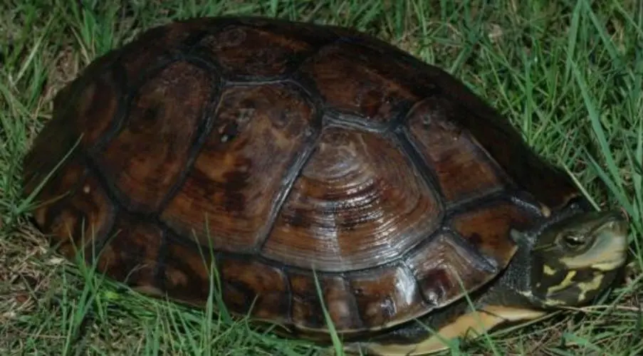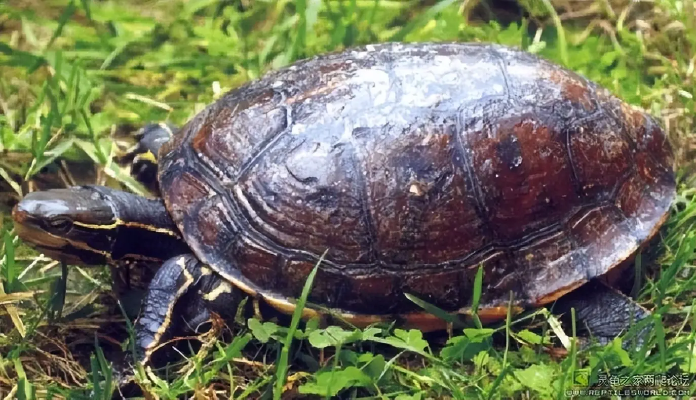 云南闭壳龟的外部形态是其分类学鉴定的重要依据之一。它通常具有椭圆形的甲壳,背甲和腹甲完全闭合,为乌龟类常见的特征。