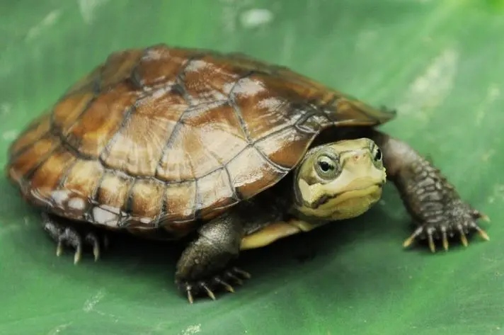 甲壳表面光滑,呈现出绿色至棕色的颜色,上面散布着不规则的斑点或斑纹,使其在自然环境中具有很好的伪装能力。云南闭壳龟的四肢短小,具有弯曲的爪子,适应了其在水陆两栖环境中的生活方式。