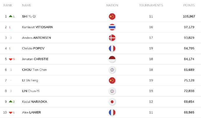 #石宇奇105967分世界第一#世界羽联2026年第16周世界排名公布,石宇奇凭借在2026年宁波亚锦赛夺冠的强势表现,以105967分时隔六周重返羽毛球男单世界第一,同时国羽包揽男单、女双、混双三项世界第一席位,展现强大统治力。#林丹认证石宇奇是超一流#