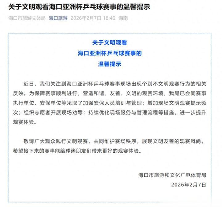 面对问题,官方反应迅速。海口市旅文局已发布文明观赛提示,并通过加强管理、现场劝导等方式介入。这传递出明确信号:维护赛场秩序是认真的。