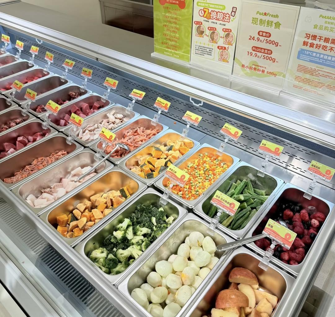 盒马鲜生创始人侯毅也看准时机、下场宠物经济赛道,创立宠物食品新零售品牌派特鲜生,在这里顾客可以为宠物自选新鲜食材、现场制作加工,就像吃麻辣烫一样,也因此被网友称作“宠物麻辣烫店”。目前,派特鲜生在上海的门店数量已达20多家,并在5月7日宣布完成2500万美元天使轮融资,创下近年来宠物行业天使轮融资新高。